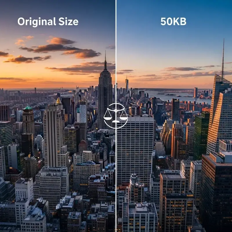 50KB images load almost instantly, even on slower connections. This improves user experience, reduces bounce rates, and helps with SEO rankings by meeting Core Web Vitals standards.